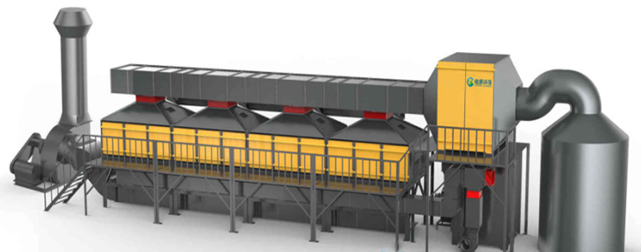 根據(jù)吸附(效率高)和催化燃燒(節(jié)能)兩個基本原理設(shè)計,采用雙氣路連續(xù)工作,一個催化燃燒室,兩個吸附床交替使用。先將有機廢氣用活性炭吸附,當快達到飽和時停止吸附,然后用熱氣流將有機物從活性炭上脫附下來使活性炭再生;脫附下來的有機物已被濃縮(濃度較原來提高幾十倍)并送往催化燃燒室催化燃燒成二氧化碳及水蒸氣排出。當有機廢氣的濃度達到2000mg/m3以上時,有機廢氣在催化床可維持自燃,不用外加熱。燃燒后的尾氣一部分排入大氣,大部分被送往吸附床,用于活性炭再生。這樣可滿足燃燒和吸附所需的熱能,達到節(jié)能的目的。再生后的可進入下次吸附;在脫附時,凈化操作可用另一個吸附床進行,既適合于連續(xù)操作,也適合于間斷操作。